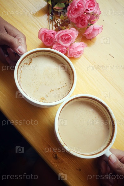 Мужские и женские пара с кофе латте