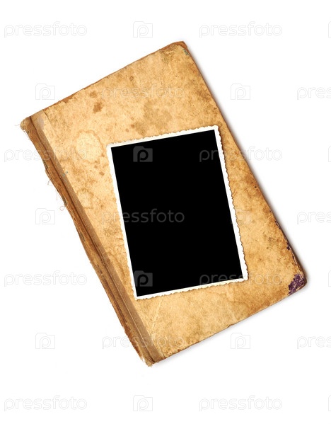 Старая книга с фотографией на белом фоне
