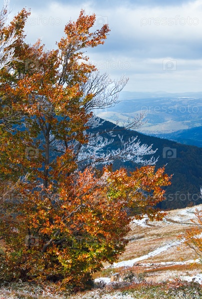 Карпатская горная местность с первым снегом