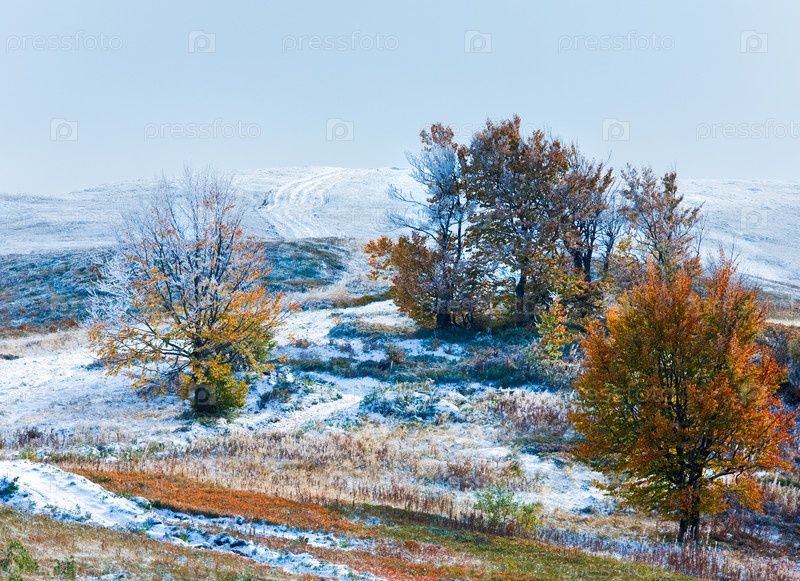 Карпатская горная местность с первым снегом