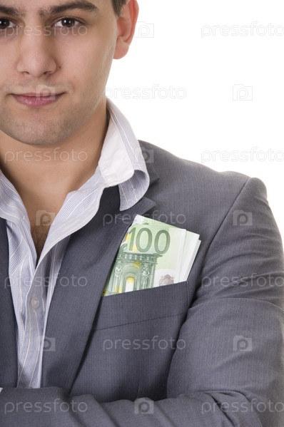Молодой парень с деньгами на белом фоне