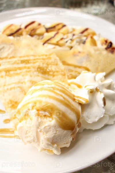 Блинчики с бананом и мороженым