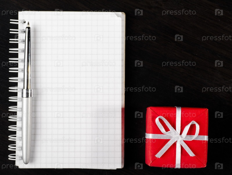 Ручка, подарок и блокнот на черном фоне