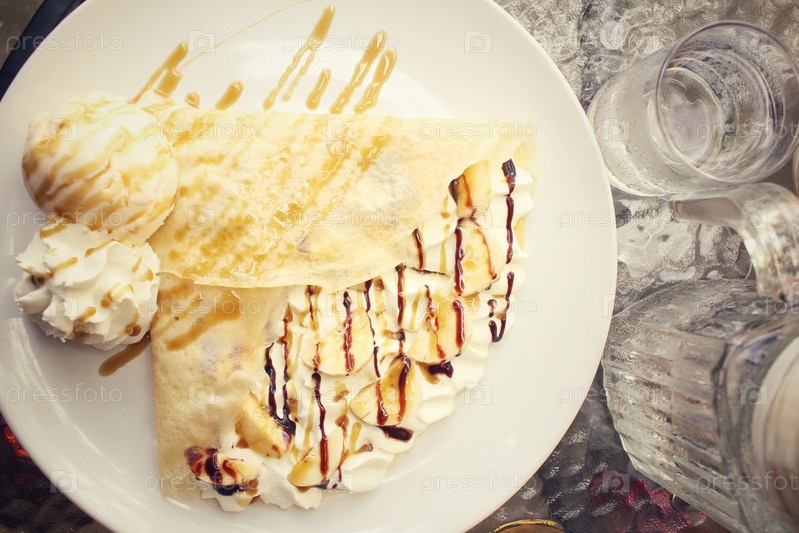 Блинчики с бананом и мороженым