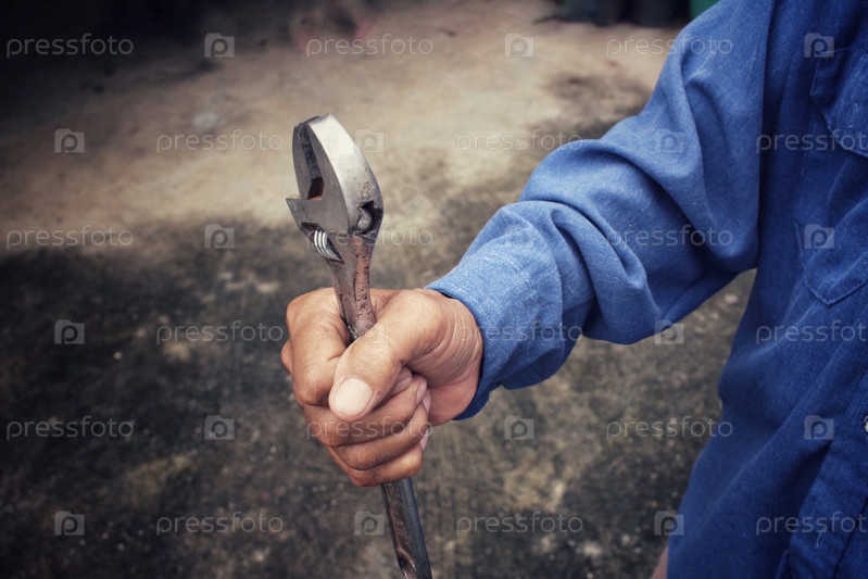 Человек с раздвижной гаечный ключ инструмент