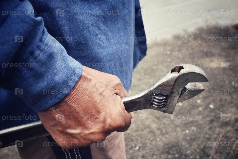 Человек с раздвижной гаечный ключ инструмент