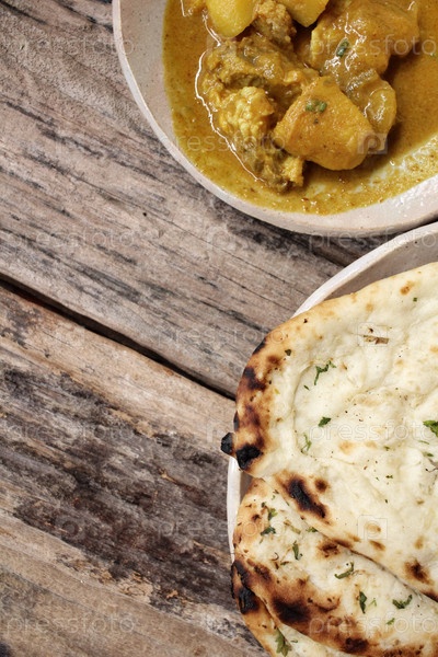 Индийский хлеб и суп карри