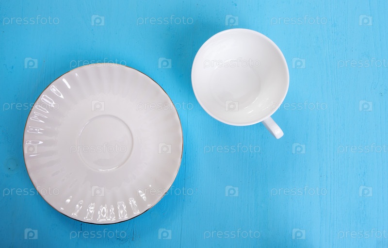 Пустую тарелку и чашку