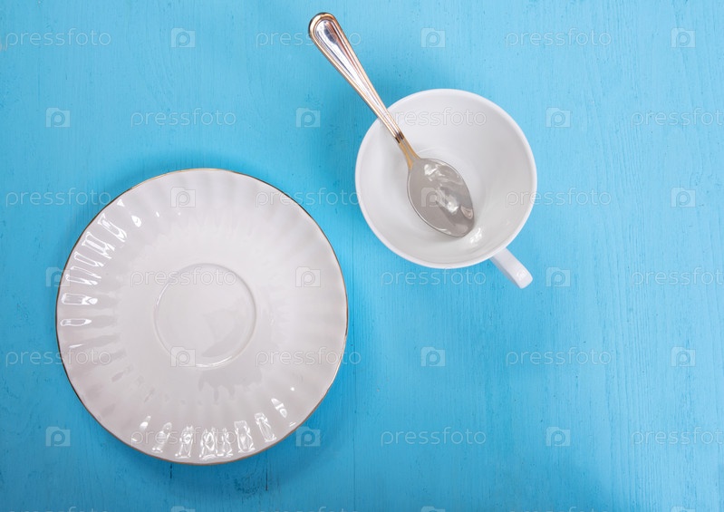 Пустую тарелку и чашку