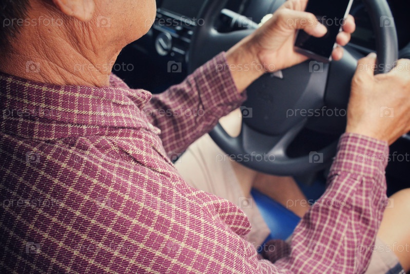 Мужчина за рулем автомобиля с телефоном