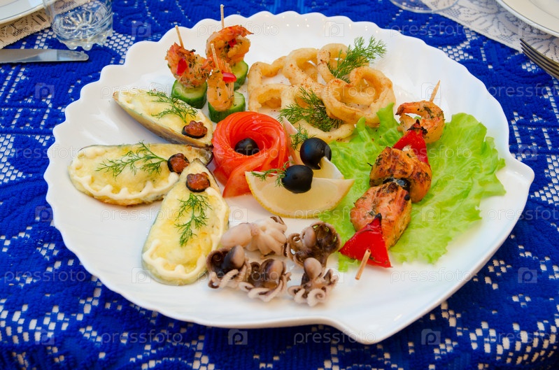 Морепродукты на тарелке