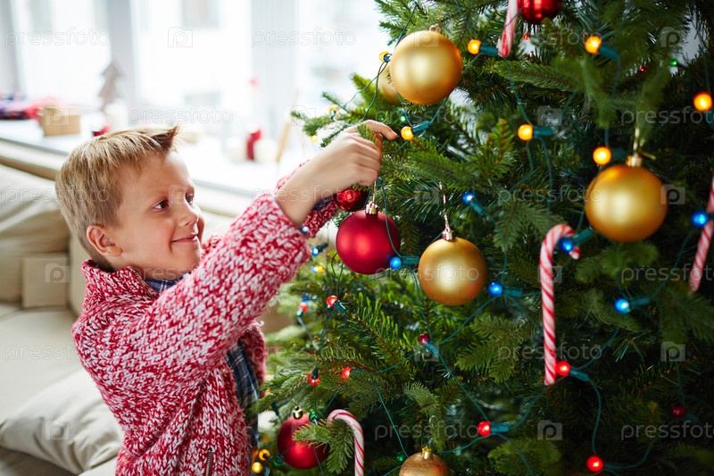 Украшение елочки шарами