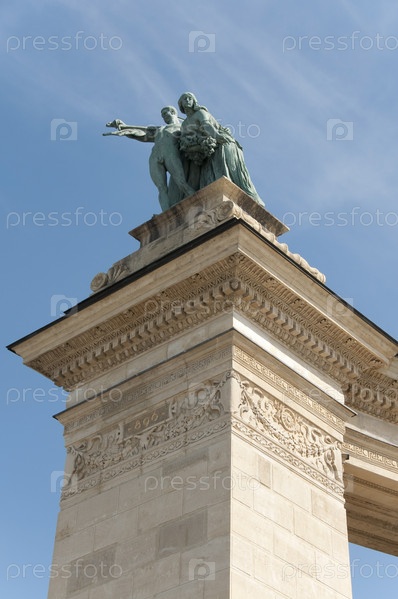 Статуя, посещенная работе и благополучии на площади Героев в Будапеште
