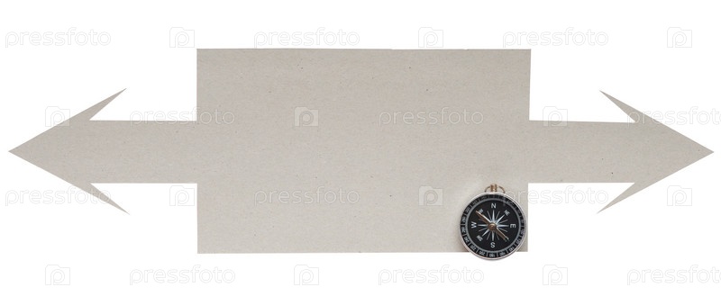 Картонные стрелки с компасом на белом фоне