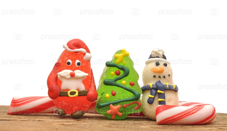 Конфета-трость и рождественские игрушки на белом фоне