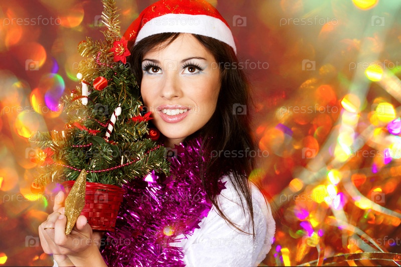 Портрет девушки с рождественской елкой