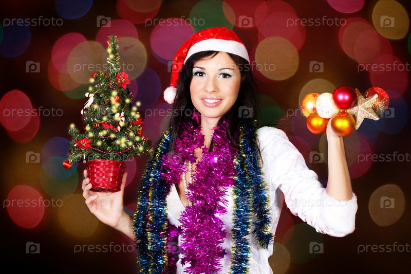 Портрет девушки с елочными украшениями