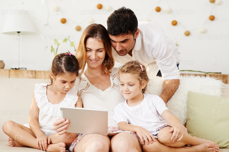 Счастливая семья с ноутбуком
