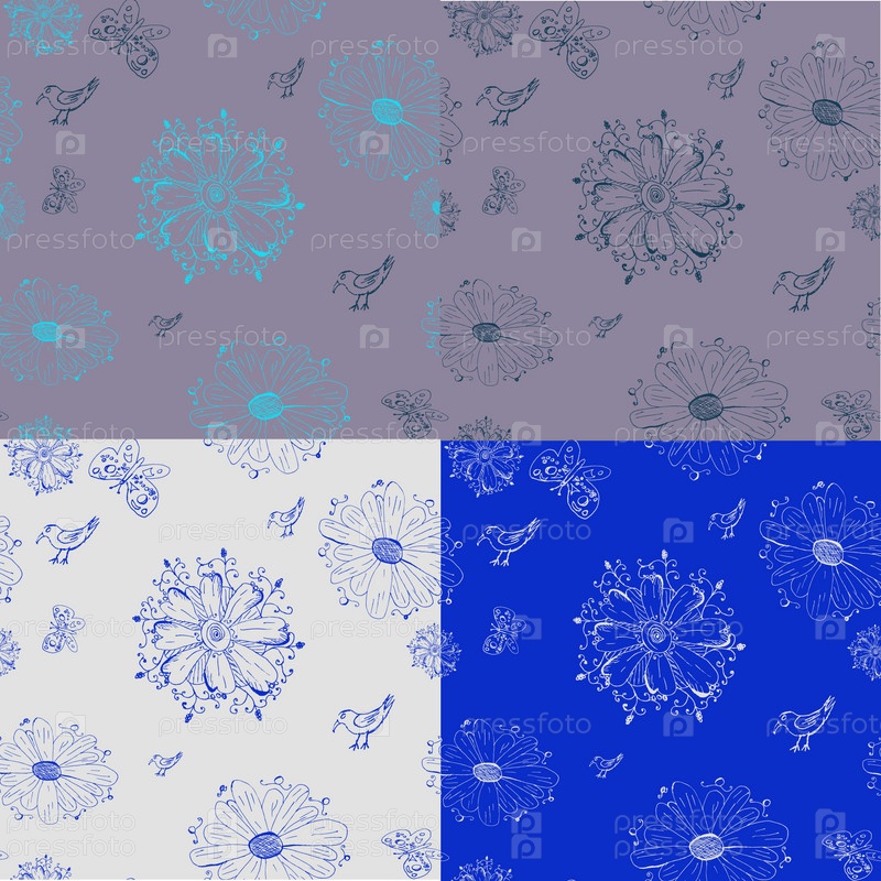 Цветные текстуры с цветами и птицами