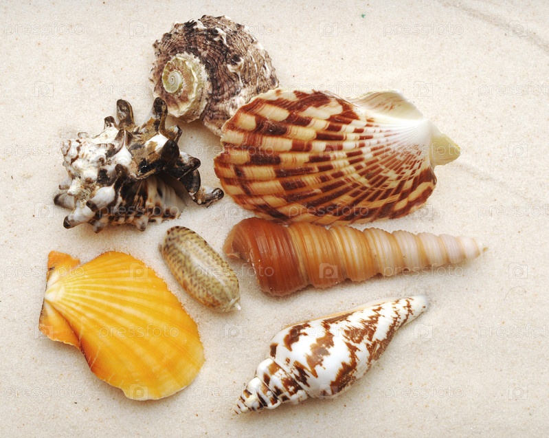 Морские раковины на песке