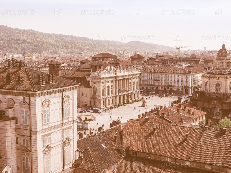 Аэрофотоснимок центральной площади Пьяцца Кастелло, Турин