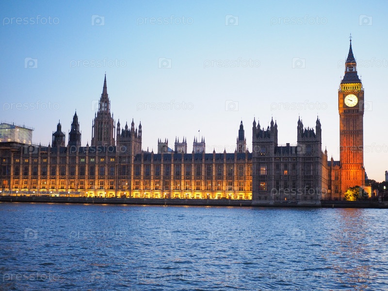Вестминстерский дворец ночью в Лондоне, Великобритания