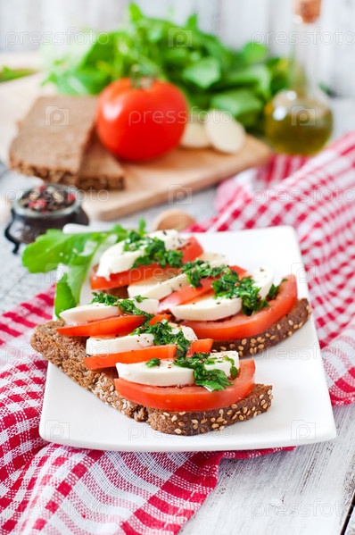 Бутерброды с помидорами и козьим сыром