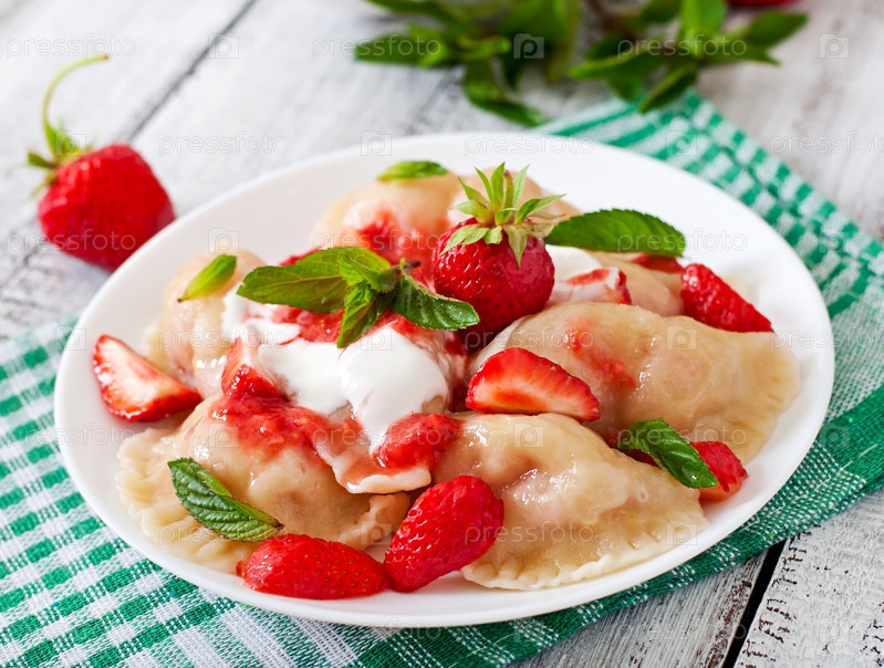 Домашние вареники с клубникой