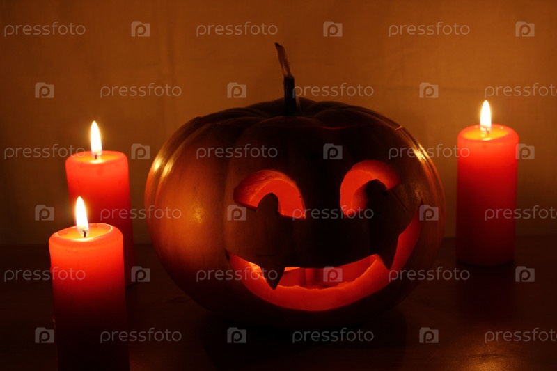 Страшно Хеллоуин тыквы с зажженными свечами на темном фоне