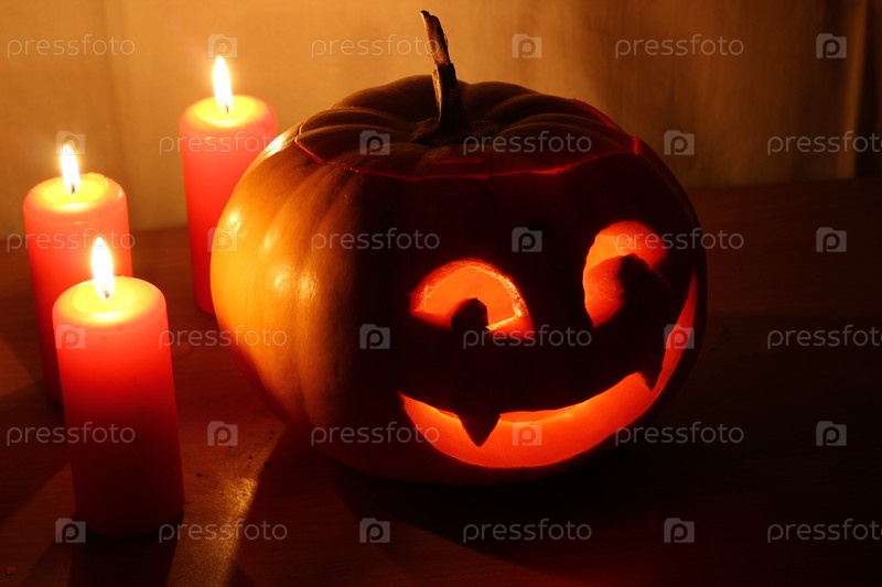 Страшно Хеллоуин тыквы с зажженными свечами на темном фоне