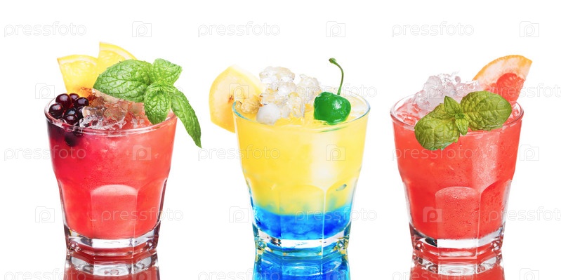 Комплект летних алкогольных коктейлей, изолированные на белом фоне