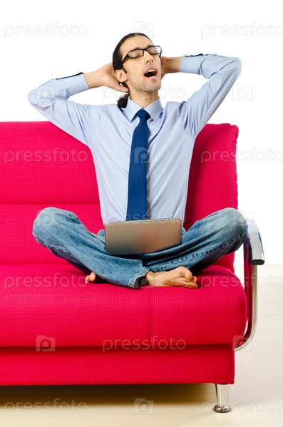 Молодой бизнесмен с ноутбуком, сидящий на диване