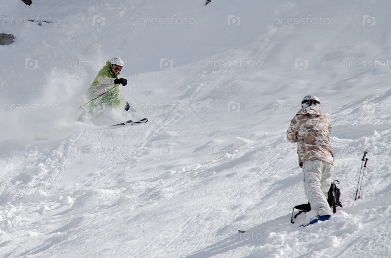 Лыжники на склоне горы
