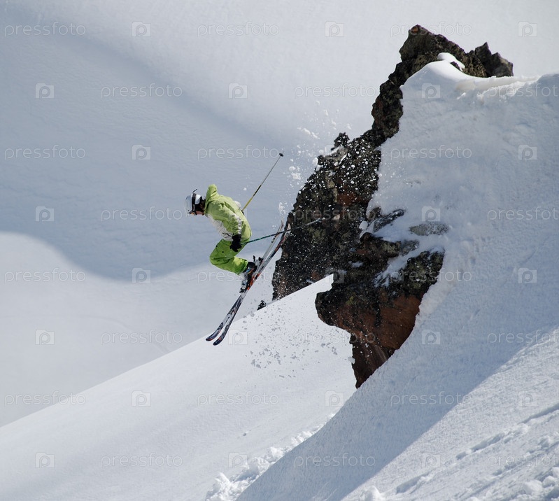 Лыжник прыгает со скалы