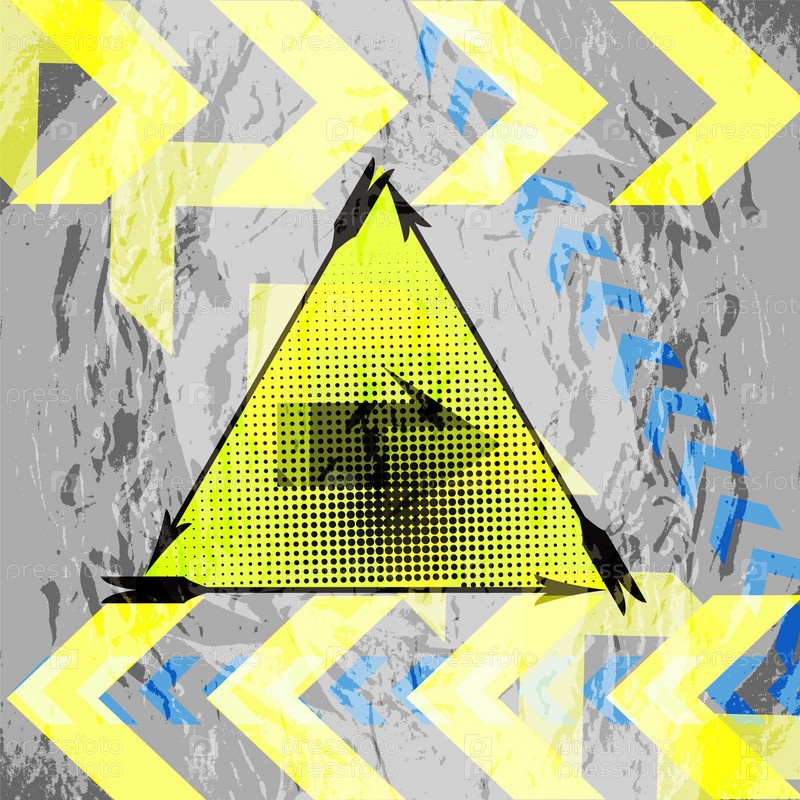 Векторный фон с желтыми стрелками и дорожным знаком на сером фоне