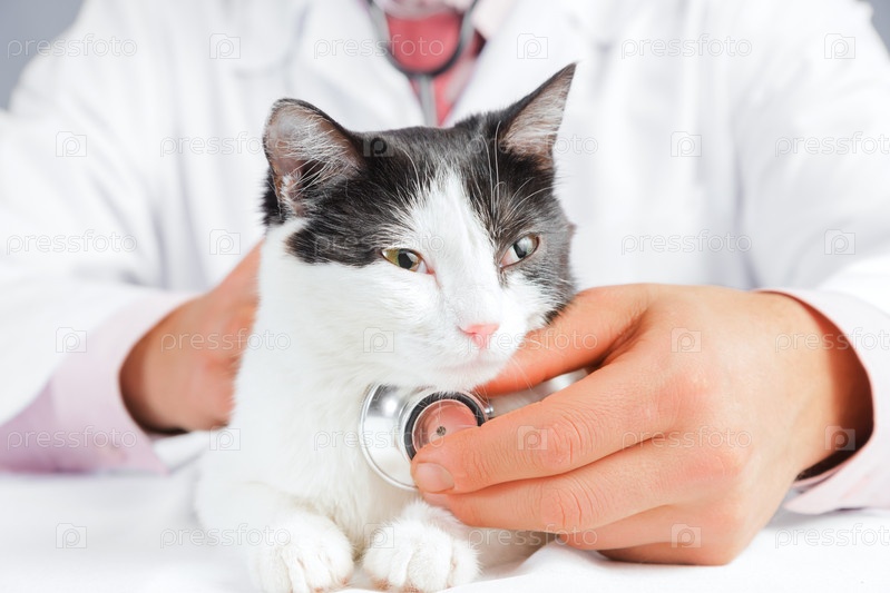 Ветеринар слушает кошку