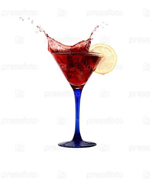 Бокал красного коктейля на белом фоне