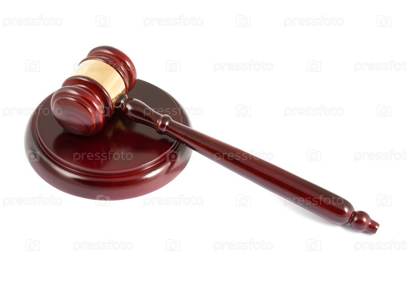 Судейский молоточек на белом фоне