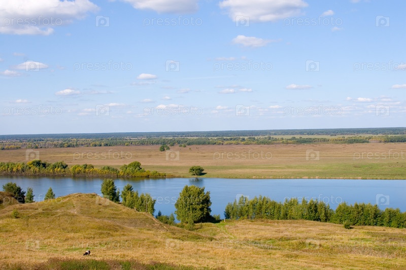 Красивая вид реки и луга летом