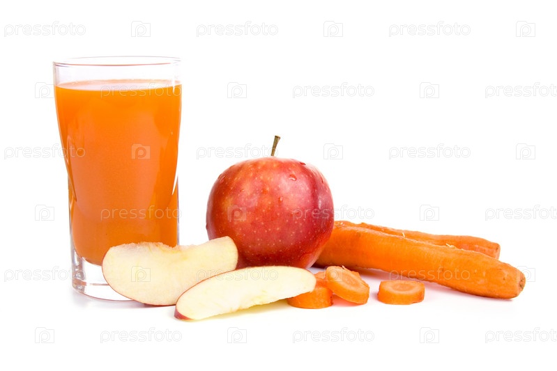 Яблочно-морковный сок, на белом фоне