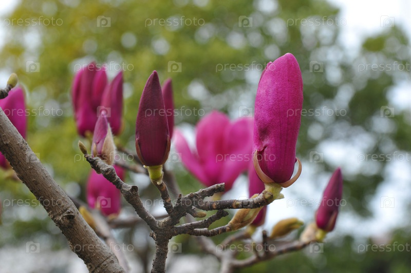 Сиреневые цветы. Магонолия Суланжа (тюльпанное дерево).