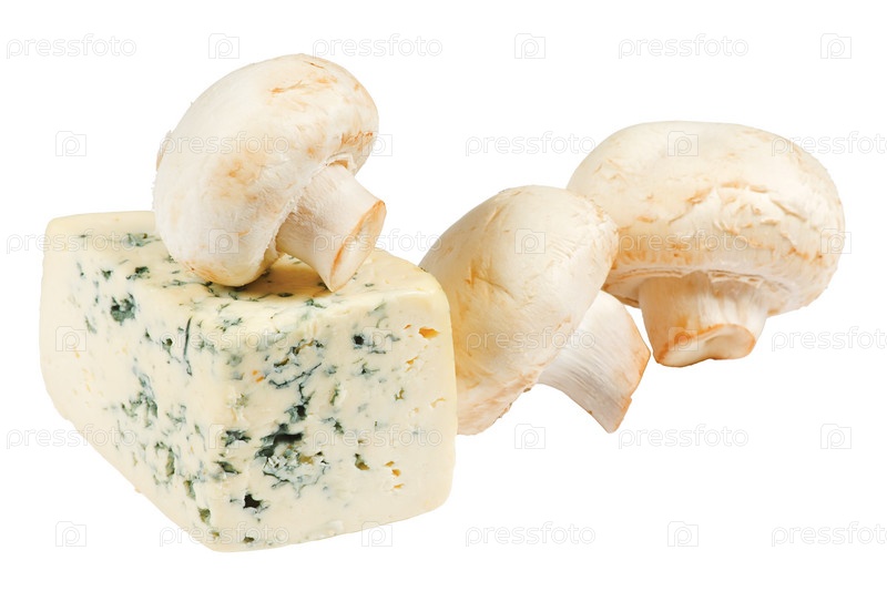 Кусок сыра с плесенью и шампиньоны