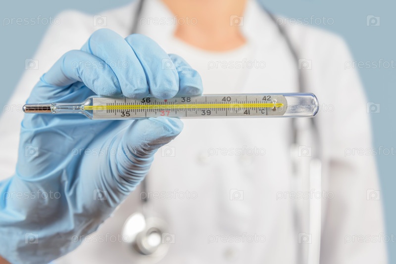 Медсестра держит термометр