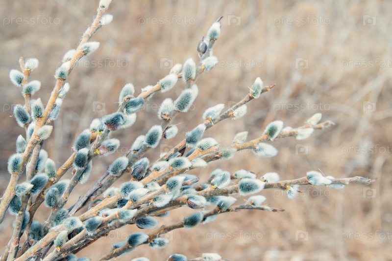 Ветки вербы с пушистые шишки