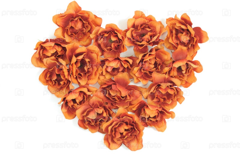 Сердце из цветов на белом фоне