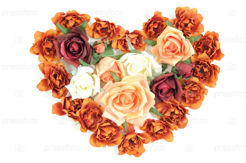 Сердце из цветов на белом фоне