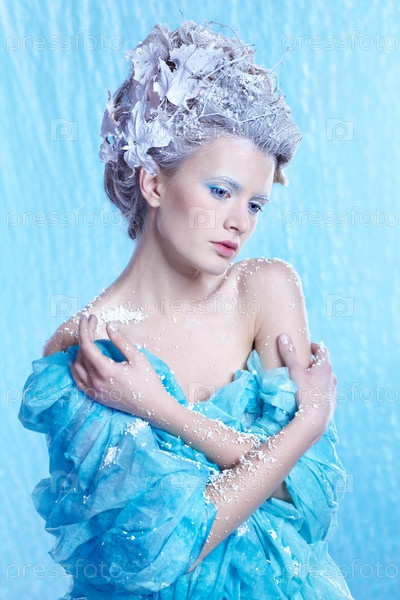 Сказочная снежная фея на голубом фоне