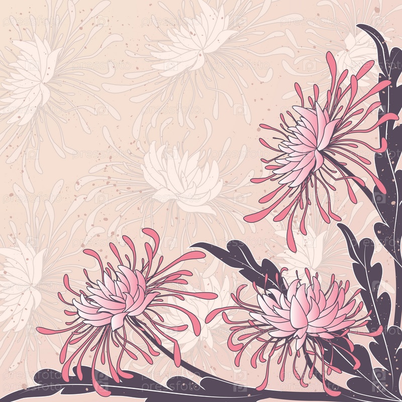 Хризантемы, цветочный розовый фон