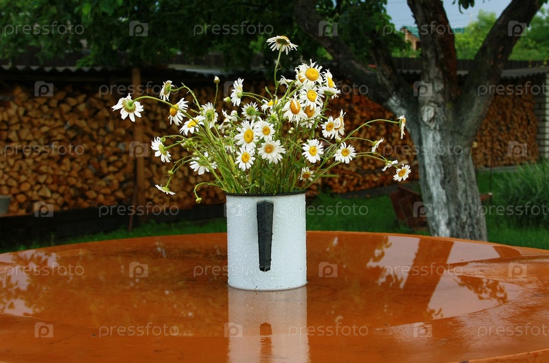 Букет полевых ромашек на столе