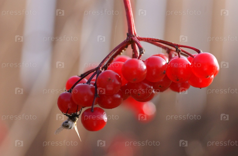 Горздь калины крупным планом и насекомое на ней